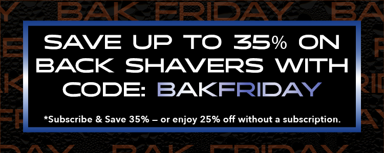 All of our best-selling back shavers are on sale — including the BakBlade 3.0 Stealth and new BakBlade 2.0 SilverBak. You’ll find all current offers right here on our Bak Friday Collection page.